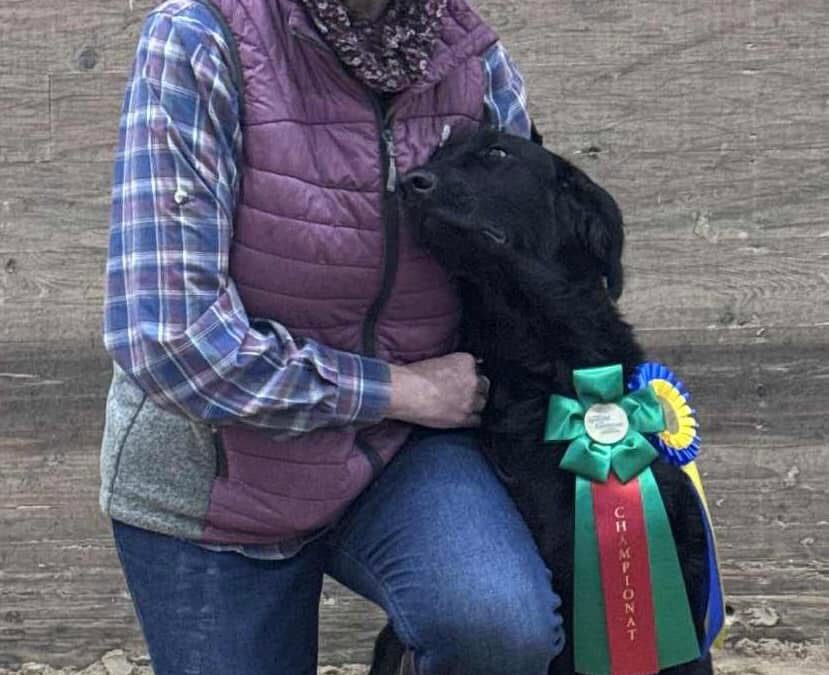 vår egen Sort Guld Down Set Hut ”Vicki, en stor öppen klass, tvåa i bästa tik med cert och är nu nybakad champion.
